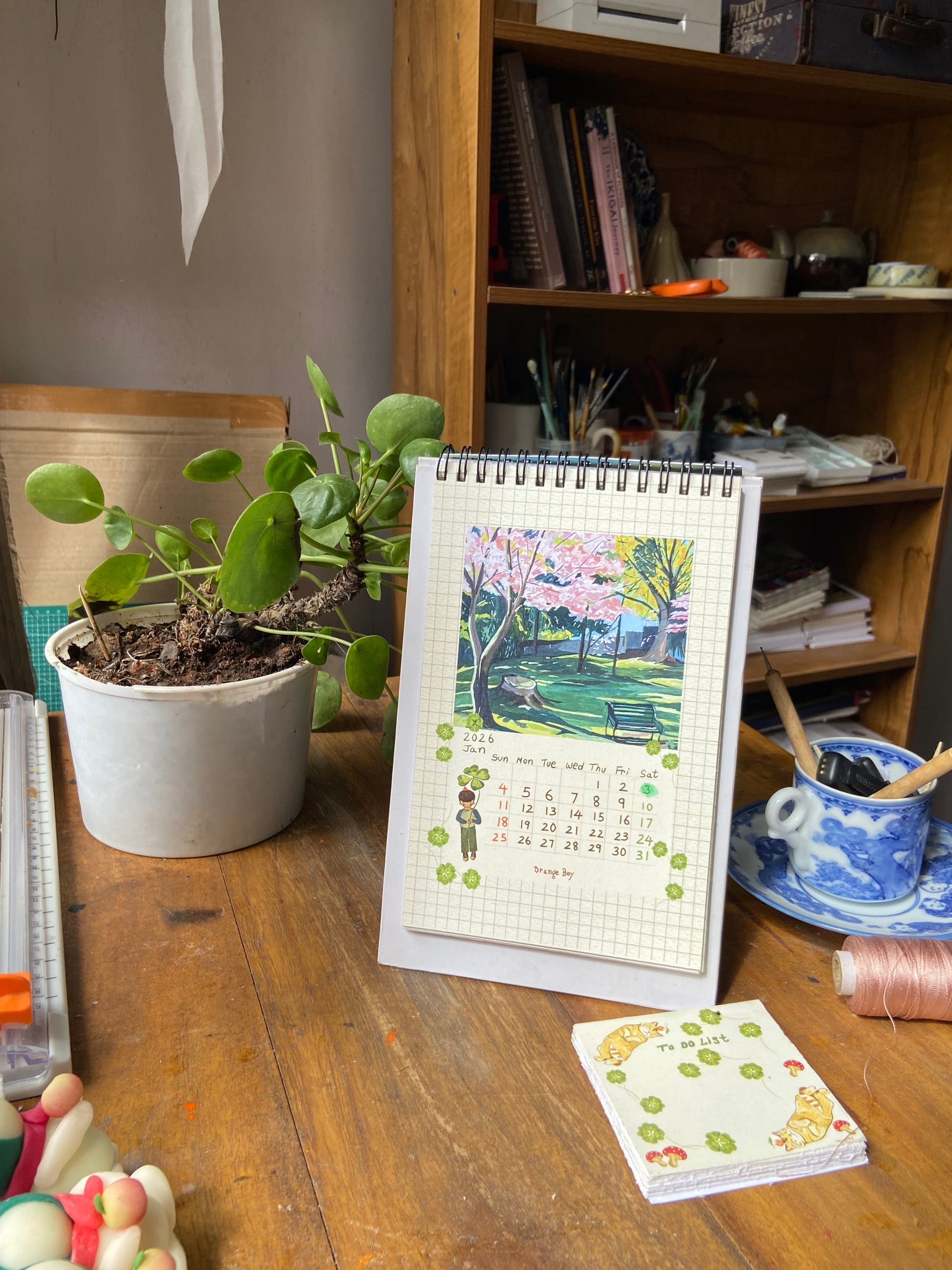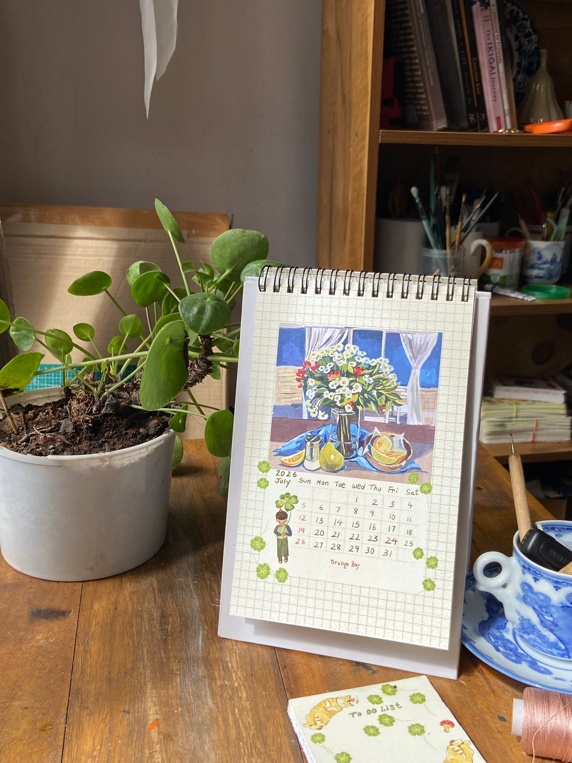 Orange boy 2026 childhood nostalgia calendar is an ode to our younger self to be kind & make time for ourselve. It’s for everyone who still believes in the stillness of taking care of your inner child, slow living and a reminder to take care of yourself; take a break, breathe once a while . Every month in this calendar is a reflection of our childhood from Cherry blossom in January to blush of greeneries in July through September and October to realisation of passing time In November but being hopefully in December .It’s a 12 month of childhood nostalgia.